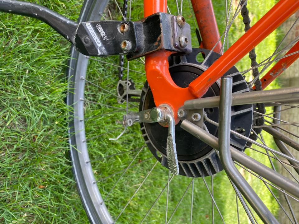 - Bremsen: V-Brakes, ARAI-Trommelbremse als Zusatzbremse hinten